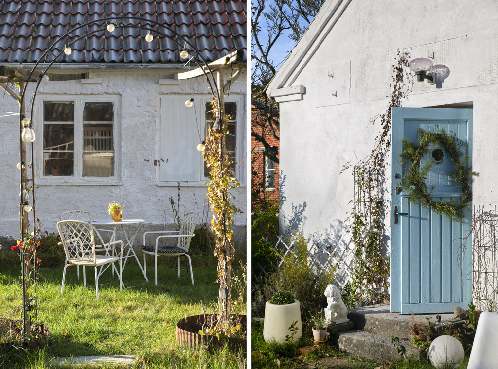 Ute finns en liten nätt och lättskött trädgård där entrén skulle kunna göras inbjudande med stenläggning för trädgårdsmöbler i solen, inramat av grönskande häckar och plank. Tomten är så pass stor att det även finns utrymme för att göra en trevlig terrassdel vid husväggen. I friliggande byggnad finns två garage/förråd med parkeringsplats utanför