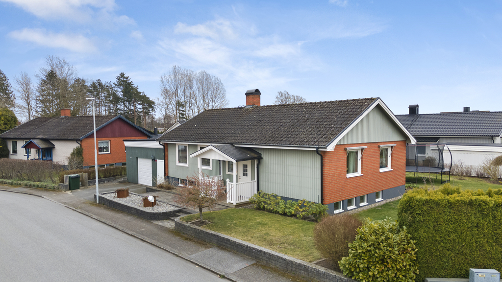 Västra Vinkelgatan 6 | TomelillaVälkommen till denna trivsamma 1-plansvilla med källare beläget på ett lugnt och barnvänligt område. Från den gröna gräsmattan, vippande hortensia knoppar och den stensatta gången välkomnas vi fram till en inbjudande entrén och en välskött bostad.